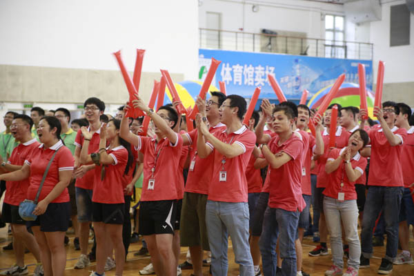 比赛中,运动健儿无疑是众人关注的焦点,他们挥洒汗水、奋力拼搏,用他们矫健的身姿展现永不言败的战斗豪情。付出汗水,释放光芒;为别人喝彩,以努力拼搏激励自己,感动他人。观众台上的拉拉队在呐喊,他们的声音仿佛全部转化成运动员们的动能。这充分展示了公司员工的运动风采和良好精神风貌。